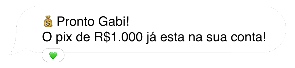 Seu dinheiro na conta em minutos. Seguro. Rápido. 100% online, direto no WhatsApp.